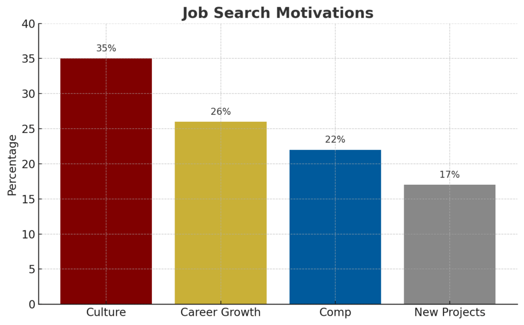 We’ve had countless conversations with candidates who aren’t unhappy—they’re just uninspired. And that’s an opportunity to identify and support cultural improvements.